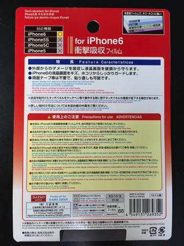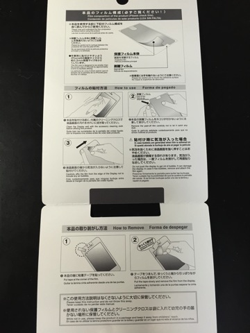 100円と侮るなかれ、貼り方・剥がし方の説明はしっかり書かれていて、iPhone5用の時と同じく小さな画面拭き取り布も付いています(iPhone5の時よりショボくなってます)。