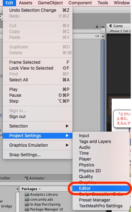 Edit>ProjectSettingsからEditorのInspectorを開いて、、、