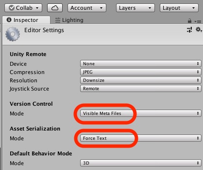 これを見えるようにして、更にAsset Serialization ModeをForce to textにしろということのようです。