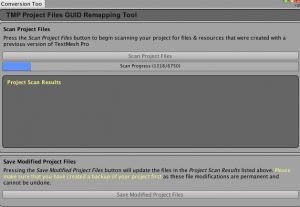 ③Window>TextMeshPro>ProjectFilesGUIDRemappingToolでScanしてSave。