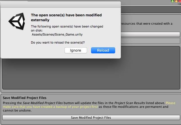 最後にシーンをリロードするか聞いてくるので、Reloadしておきます。