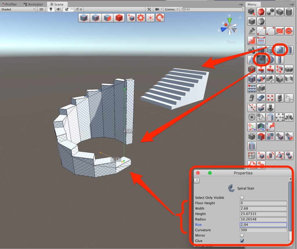 階段作成ツールはProBuilderにもありますが、UModelerのは調整機能が細かいです。