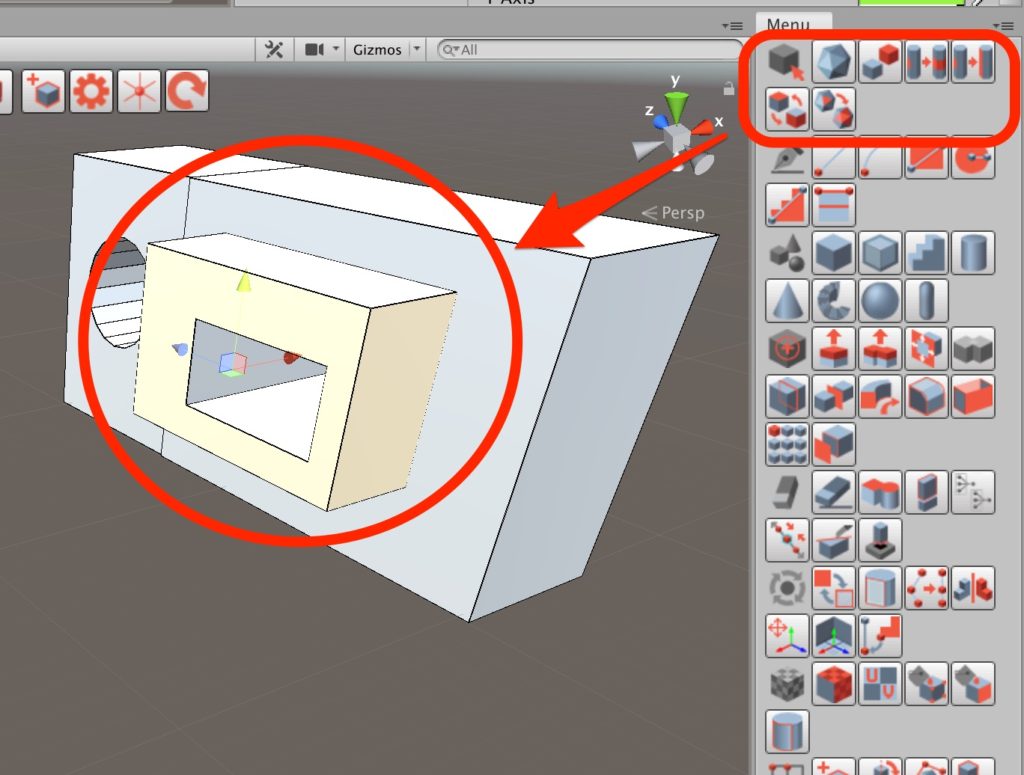 UModelerはツールの種類と機能が豊富なので、ProBuilderで作るのに時間がかかったり作ること自体が困難だった形状をより簡単に作ることができる、3Dモデリングソフト寄りなUnityのassetなのです。