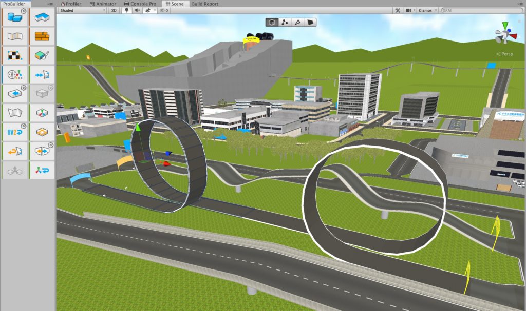 私自身、最初はProBuilderを使ってました。自作ゲームで作ったダブルループコースは、ProBuilderで作りました。(UModelerが使える今となっては、もっと早く、もっと滑らかな路面を作ることができると思います)