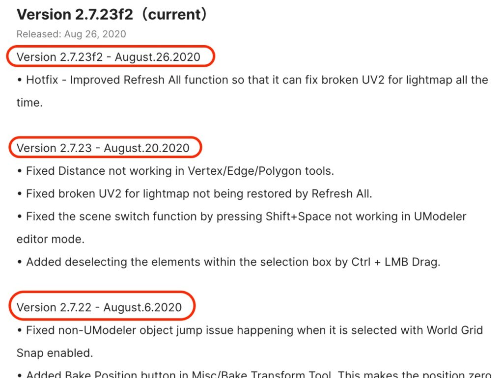UModelerのアップデートは頻繁で、バグFIXは速やかに対応してくれます。