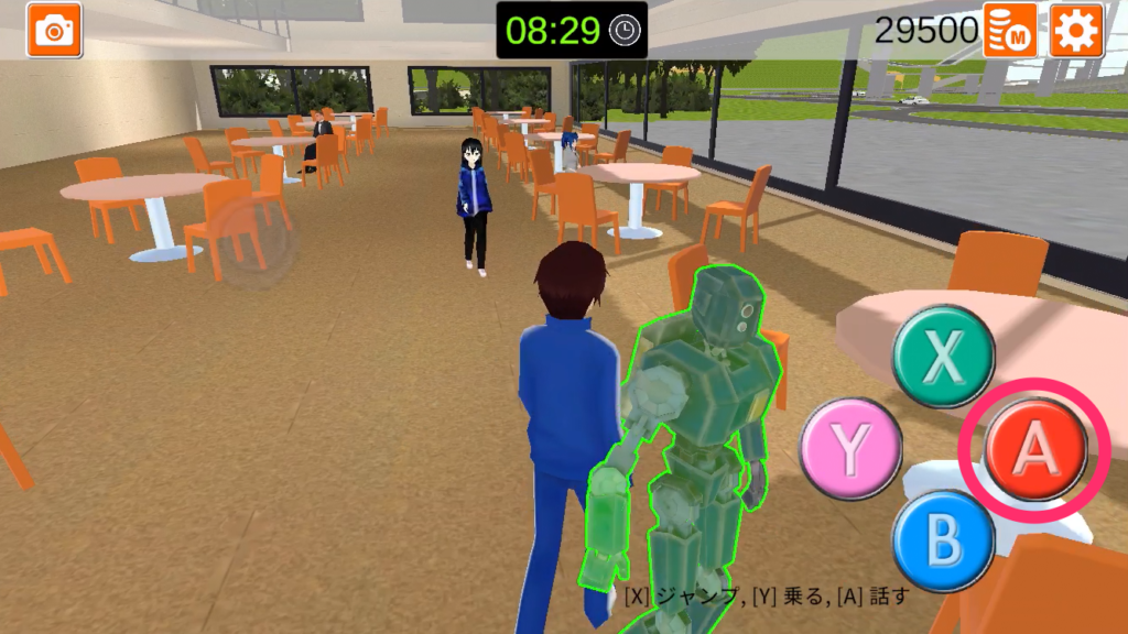 次の画面で、教習所の仲間たちの話を聞く方法を紹介します。