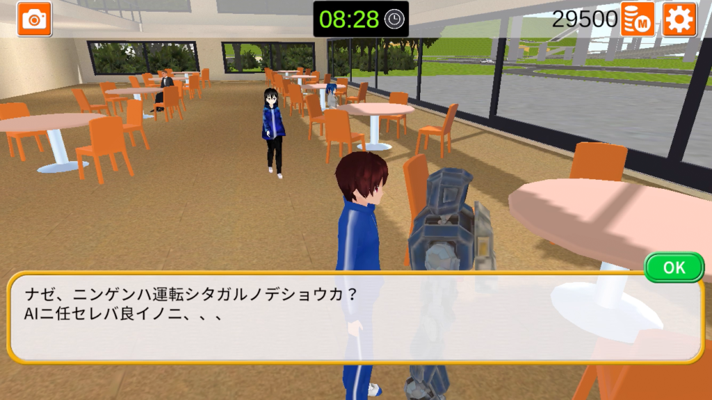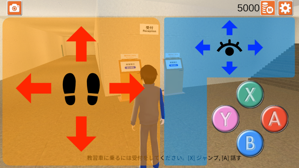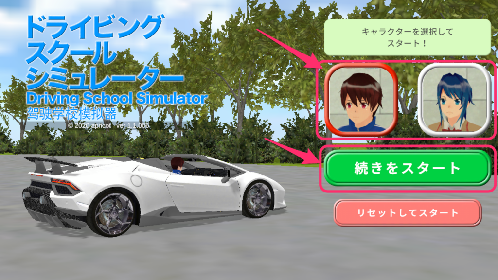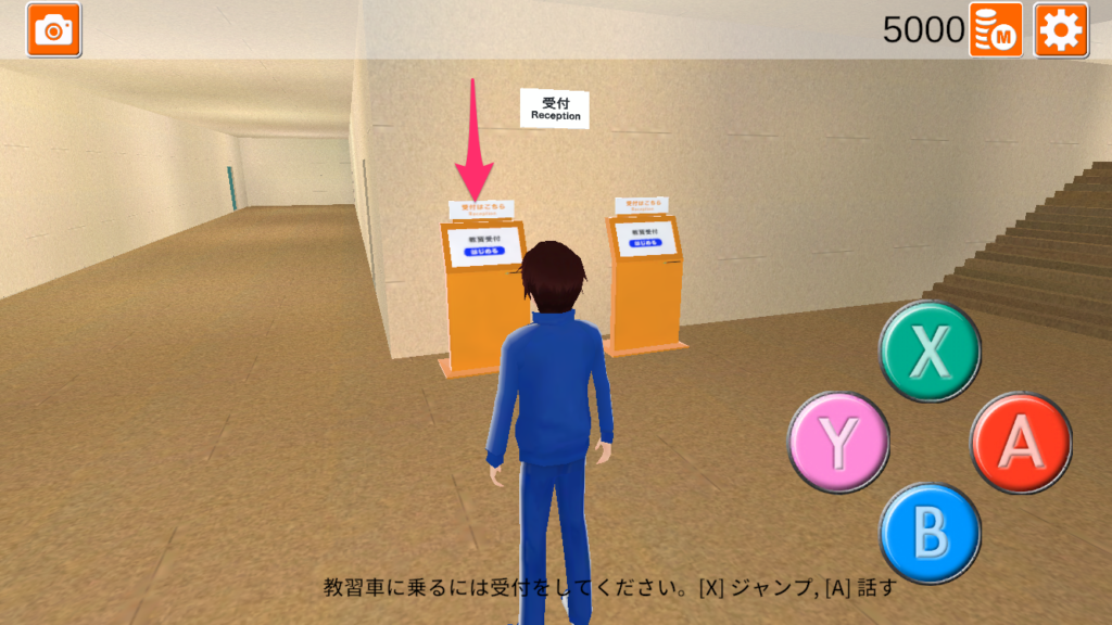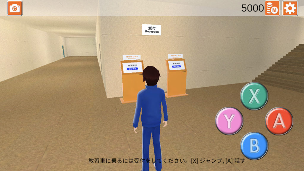 ゲームをスタートすると、自動車学校の校舎内に選んだキャラクターがいます。