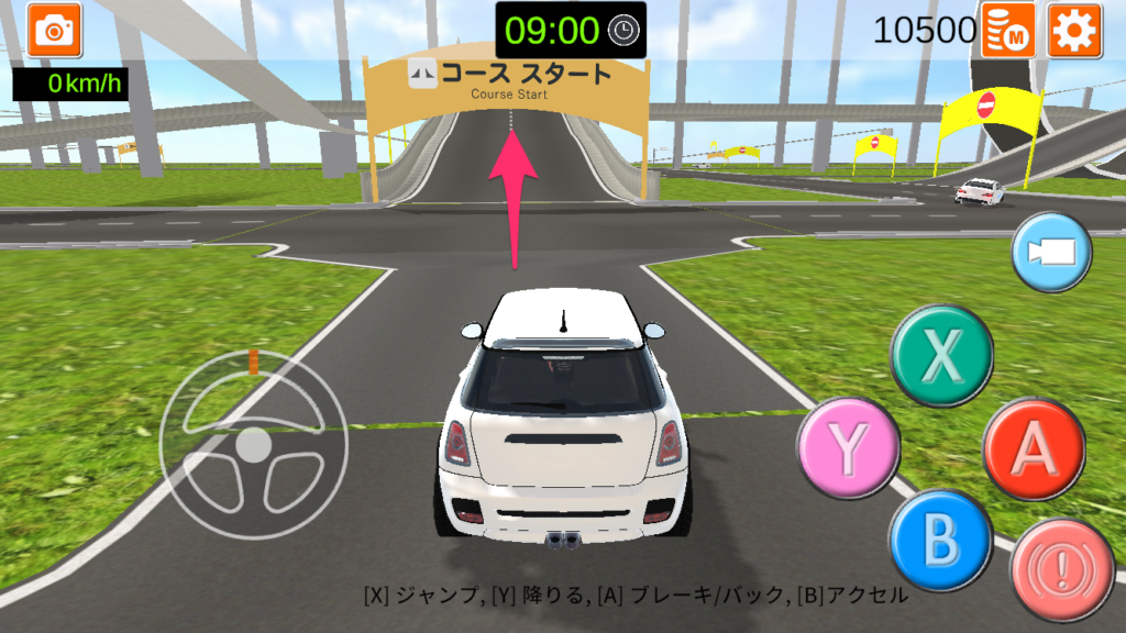 このゲームの目的は、教習車を借りて教習コースをクリアし、自動車免許を取得することです。